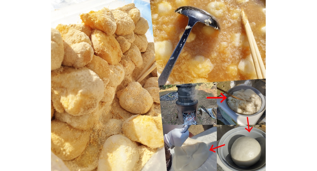 出来上がると試食会へ、 きな粉餅、辛味餅は、美味しすぎました。